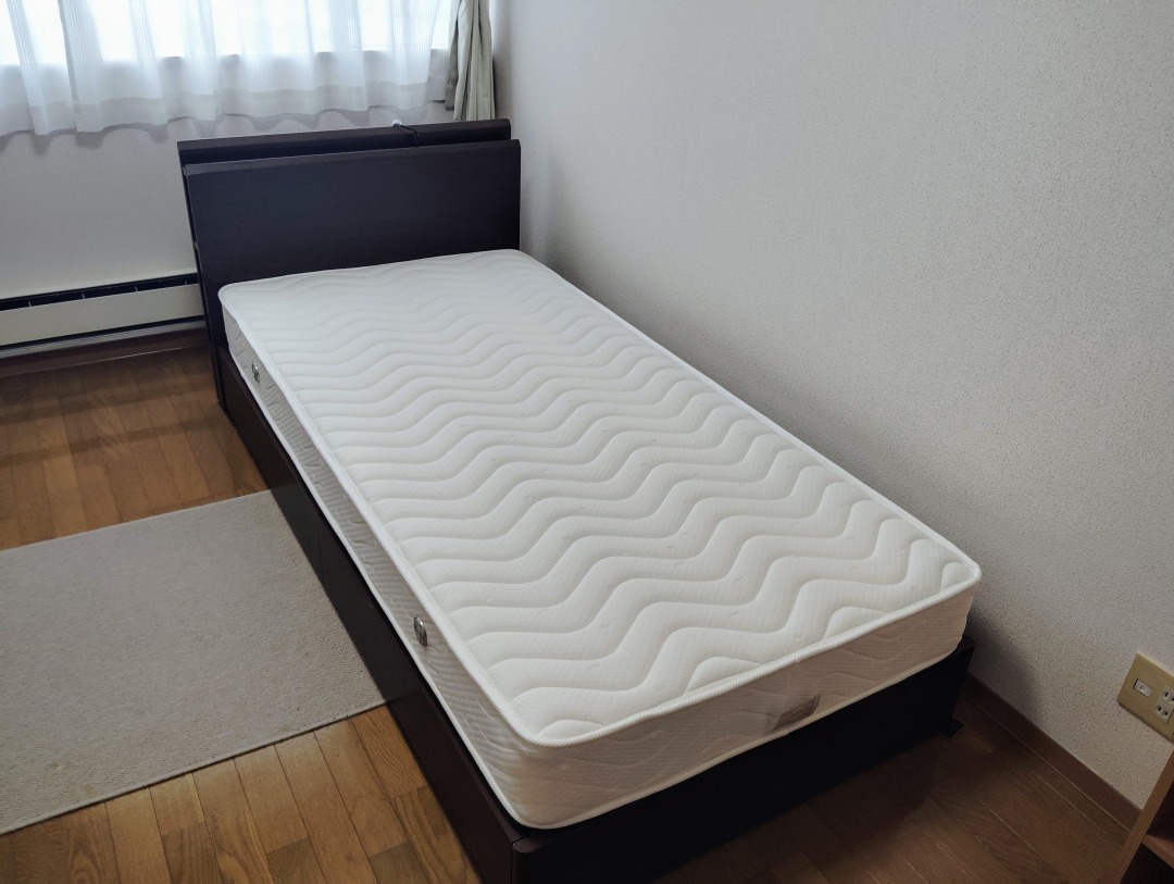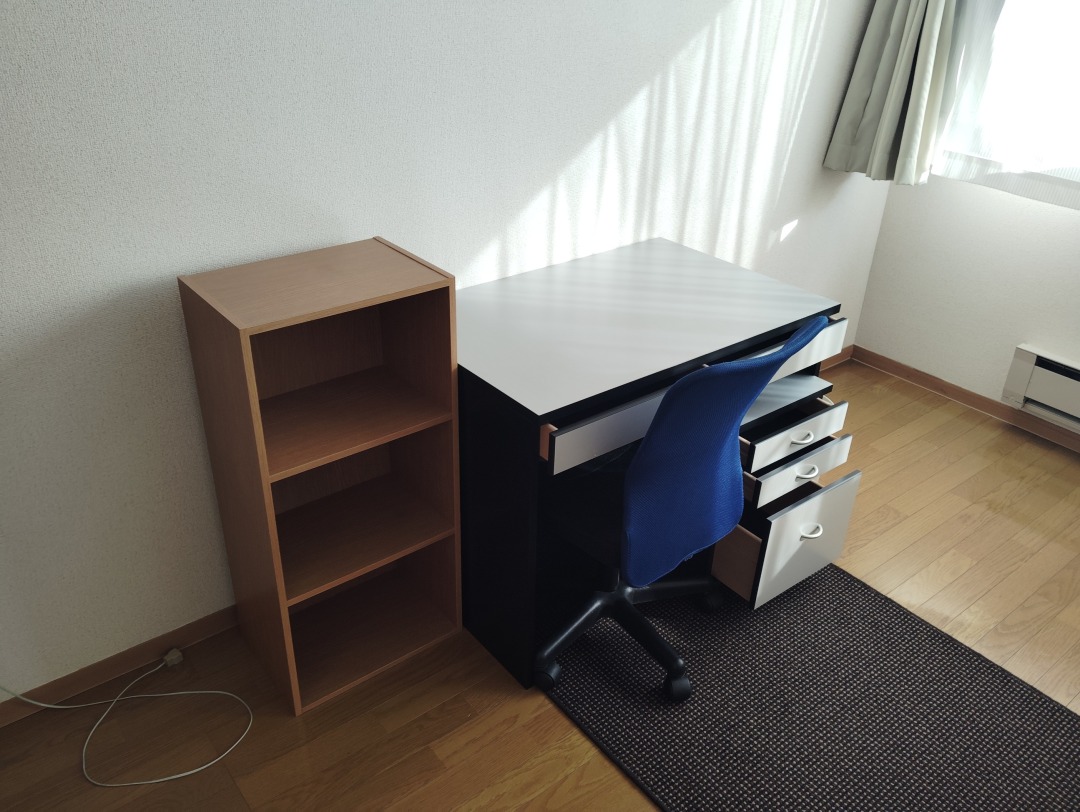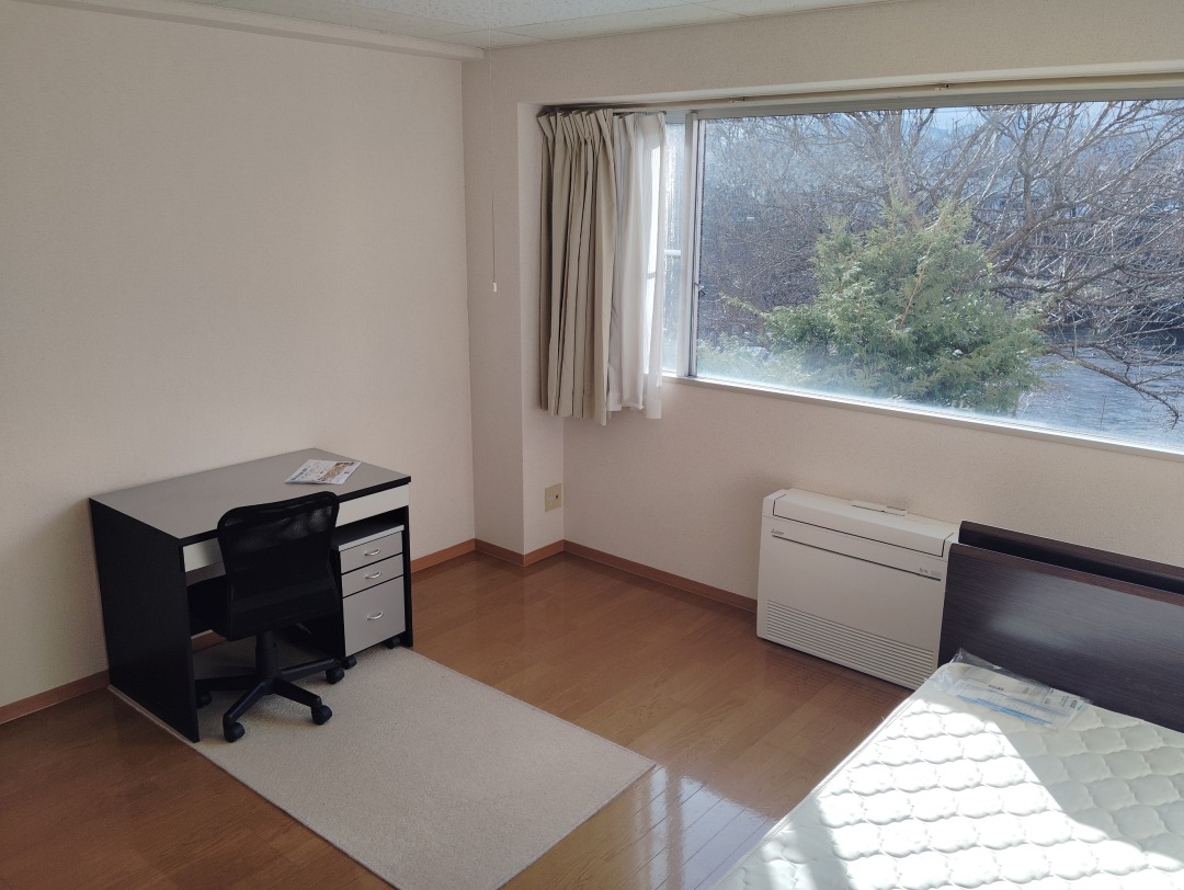 | 居室設備 | エアコン、照明器具 、ベッド、独立洗面台、机、イス、カーテン、クローゼット、バストイレ有(Eタイプのみ) |