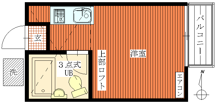 | 居室設備 | 冷暖房、シャワー、給湯完備 ロフト付、洗濯機置き場有、風呂、トイレ |